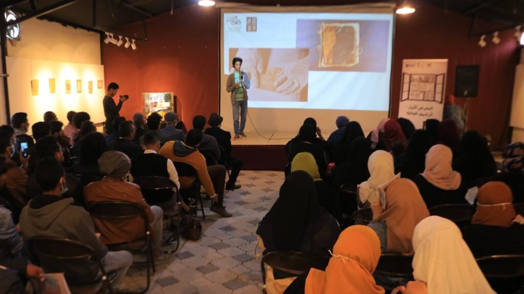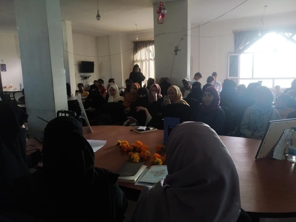 وزينت جدران الفعالية لوحات بريشة الفنان عبده علي المطري، الذي عرّف ببعض التقنيات المستخدمة في رسم لوحاته، وأجاب على تساؤلات الحاضرين.
