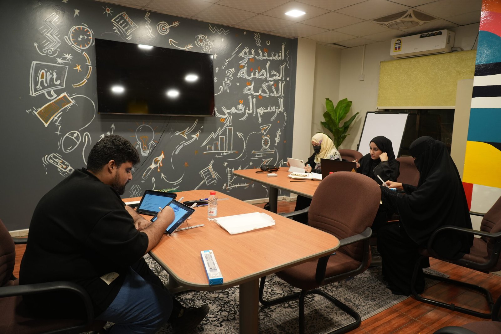 كما يوفّر الاستديو خدمات داعمة للفنانين والمبدعين، من خلال الطباعة الاحترافية عالية الجودة، والمساحات الإبداعية للعمل المشترك، إضافة إلى الاستشارات الفنية في مجال الرسم الرقمي.